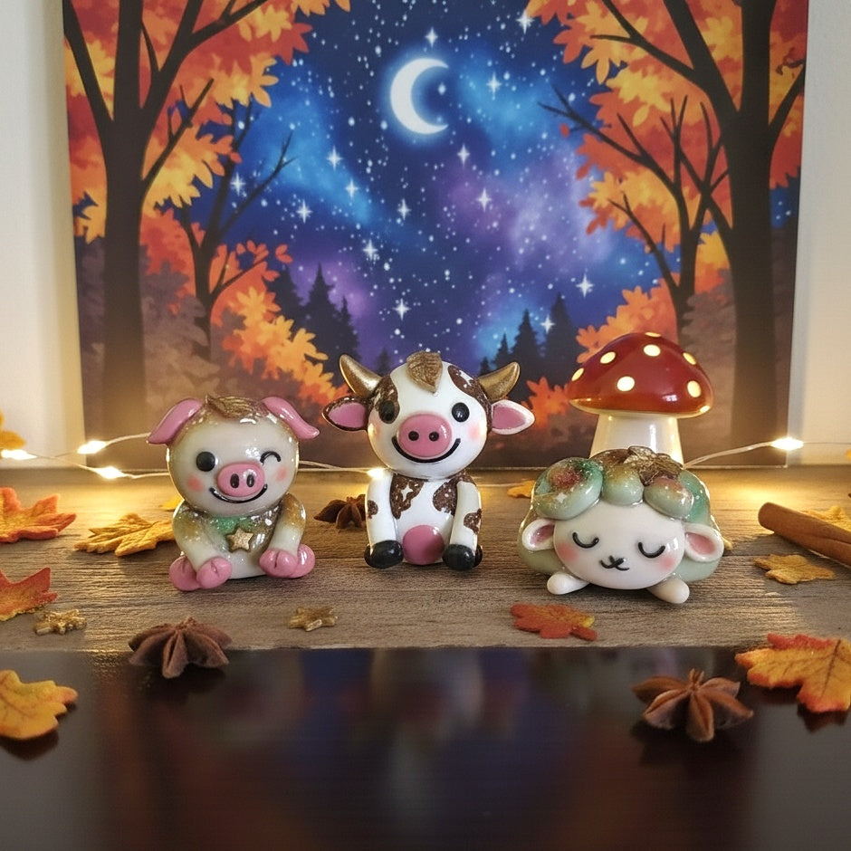 Cosmoink (Autumn Version): Clay Pig Desk Friend, Handmade Clay Craft and Resin Charm